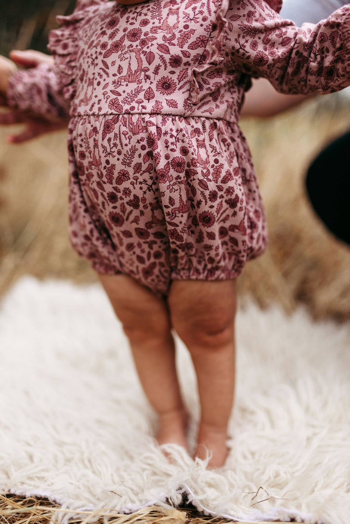 Flutter Long Sleeve Romper- Fox Floral Dusty Rose