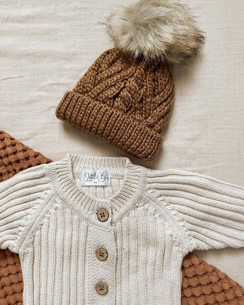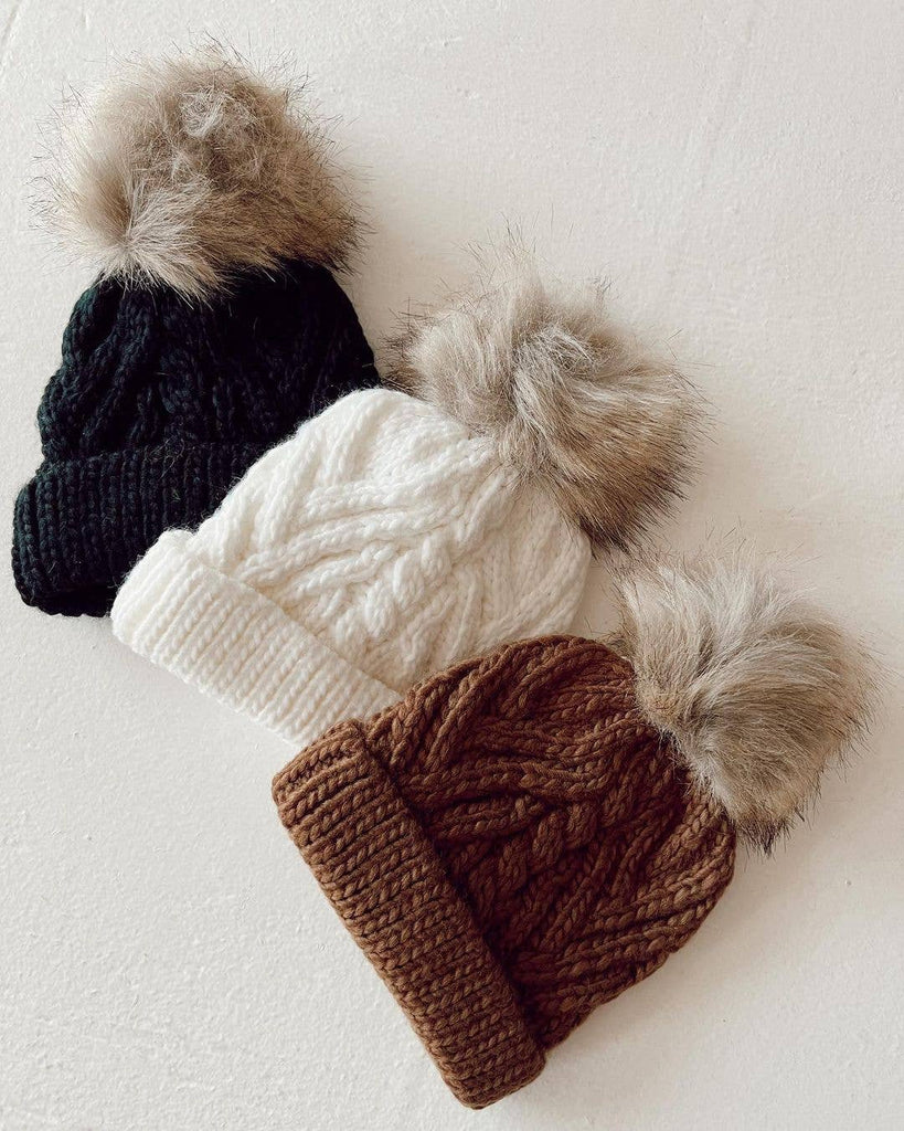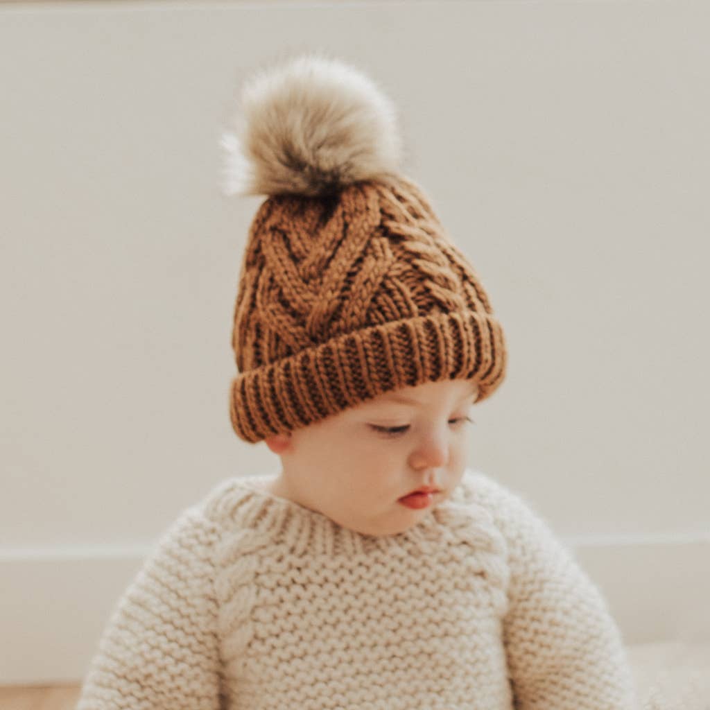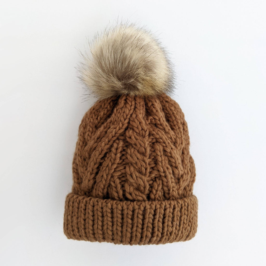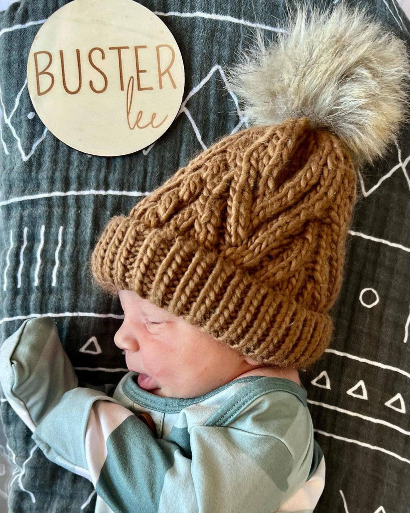 Pecan Pop Pom Pom Beanie Hat