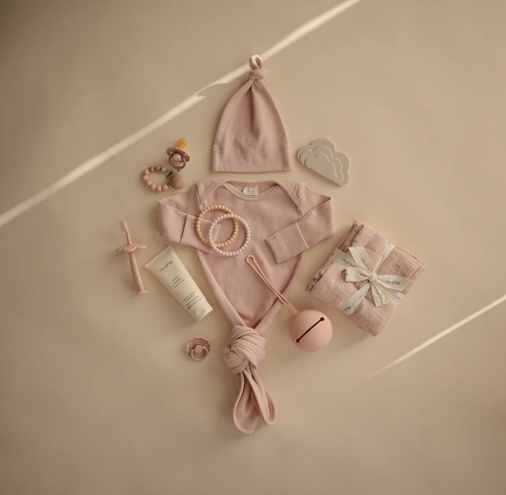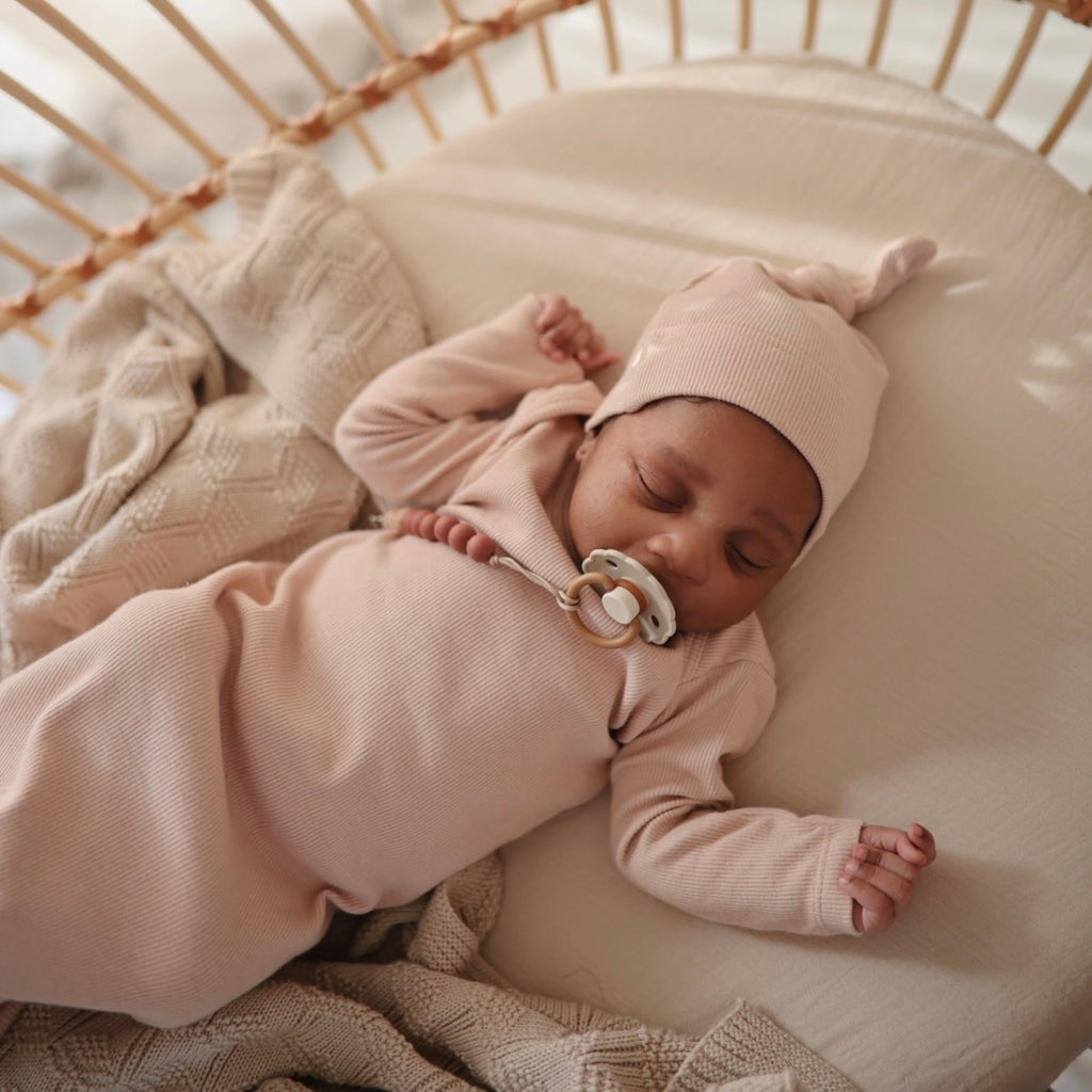Made with organic cotton, our beanie is crafted with newborns in mind and accommodates a range in head circumferences from 0-3 months. With a light stretch and top-knot design, parents and babies will love the extra soft, rib knit fabric.