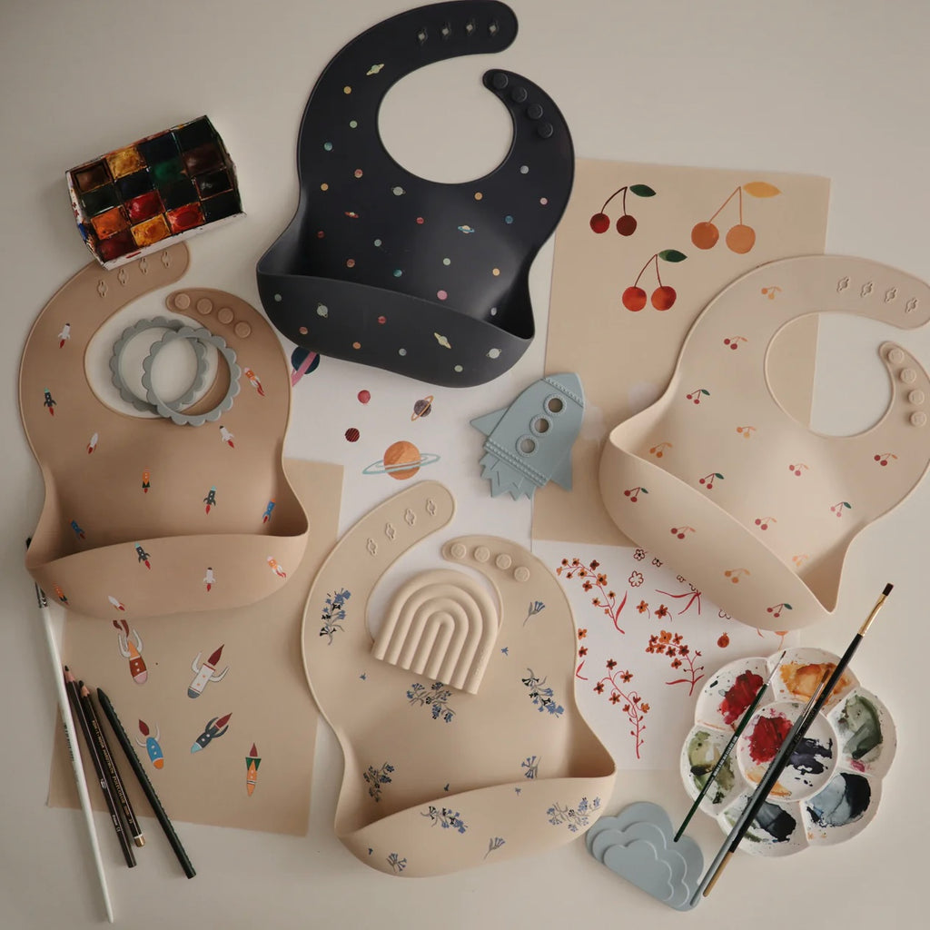 Keep your little one feeling comfy and clean with our fun-loving collection of silicone baby bibs. Designed in Sweden, Mushie baby bibs feature classic patterns, capturing a look that is both timeless and elegant.