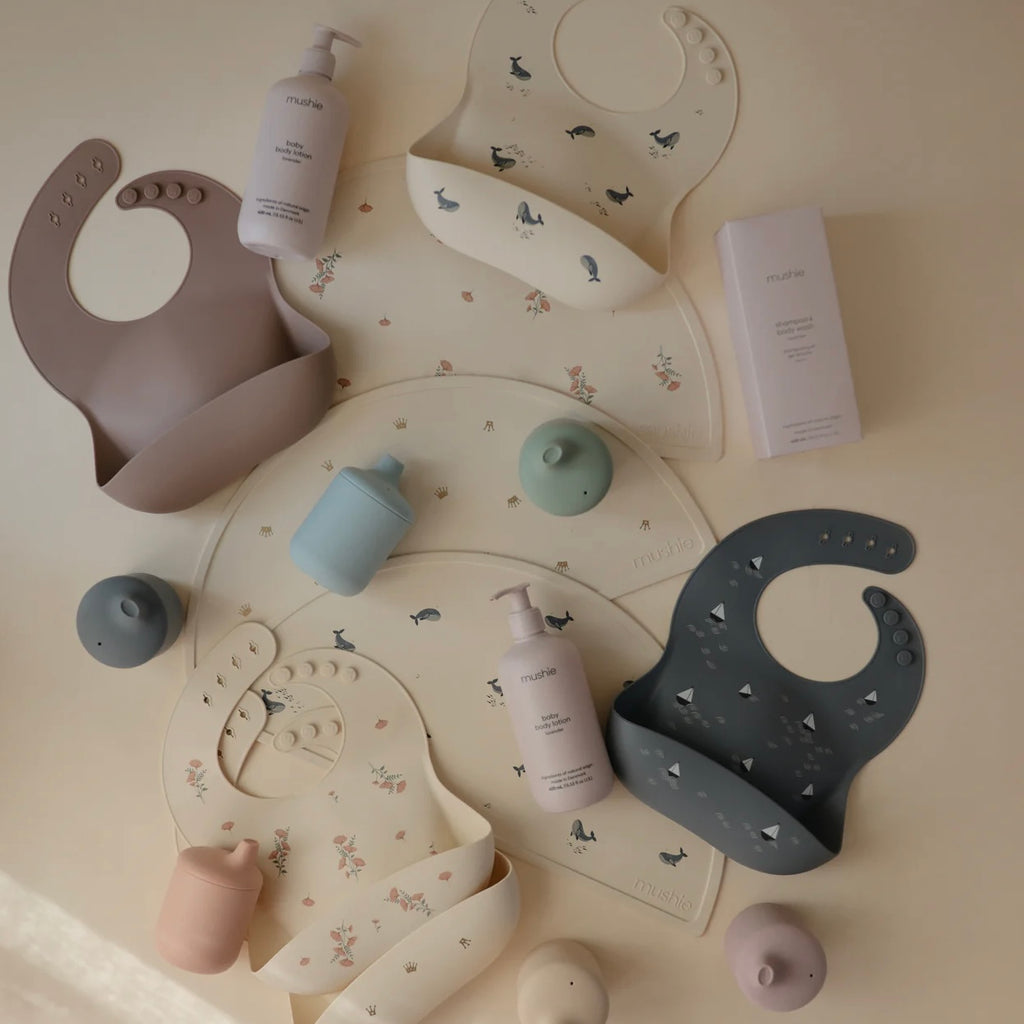 Keep your little one feeling comfy and clean with our fun-loving collection of silicone baby bibs. Designed in Sweden, Mushie baby bibs feature classic patterns, capturing a look that is both timeless and elegant.