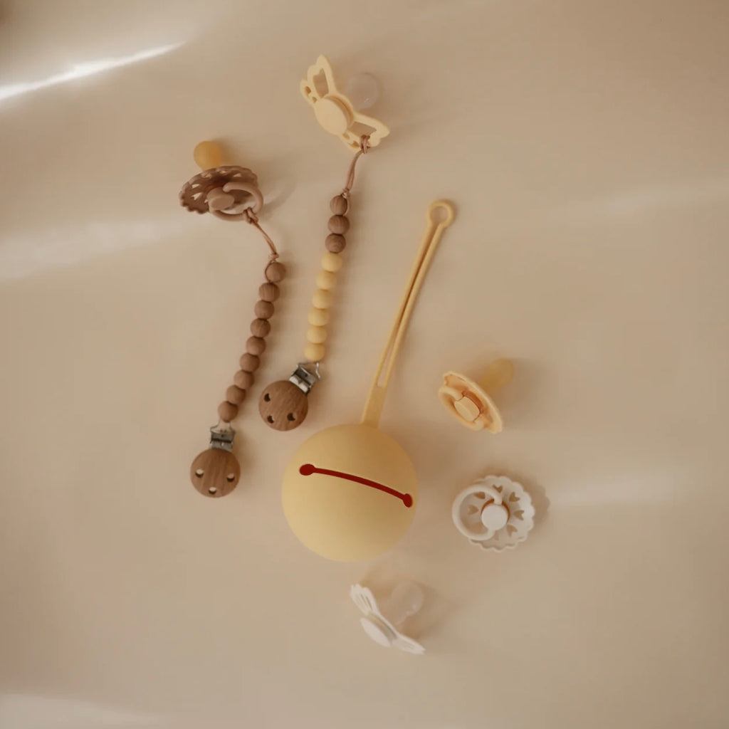 Comfort is always within reach with a mushie pacifier case, equipped with a sturdy strap and room to fit up to three pacifiers. Designed in Sweden, the pacifier case is made from food-grade silicone in timeless colors and can be easily looped onto a diaper bag or stroller.