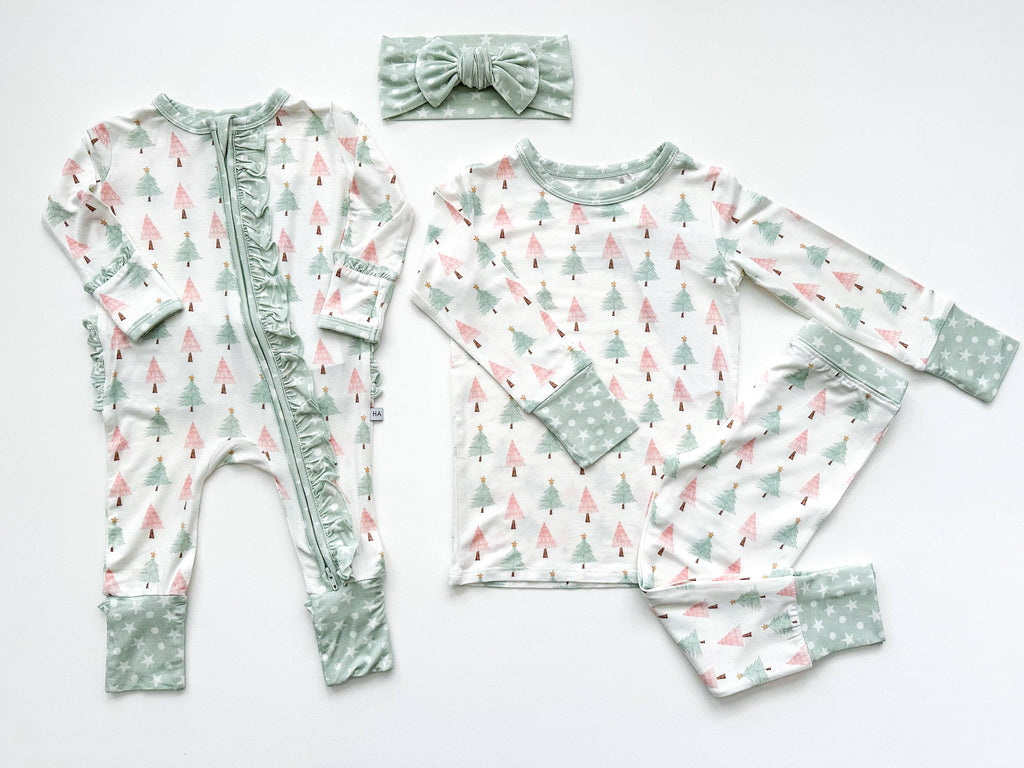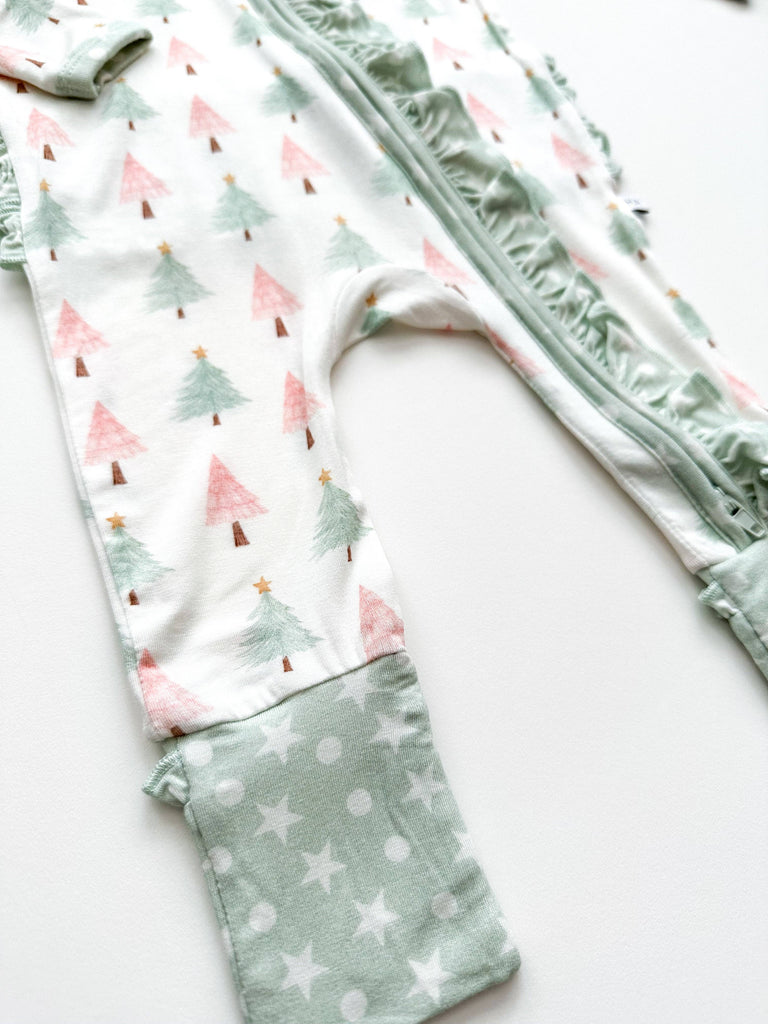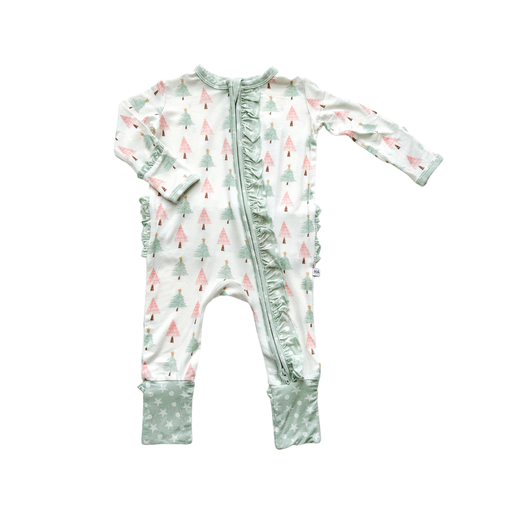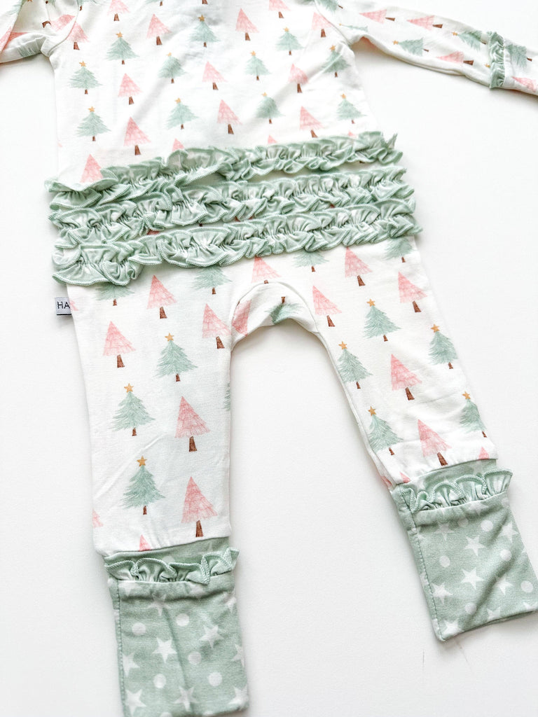 Ruffle Zipper Romper - Sweet Christmas Trees