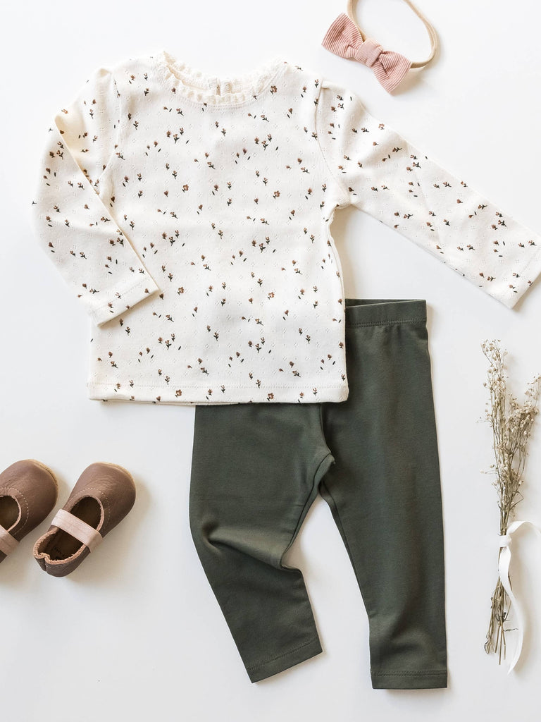 Our organic Leggings are comfy and classic wardrobe staple. These bottoms have the superior softness and luxurious feel of high quality organic cotton. The water-based based dyes used ensure the garment retains its color, vibrancy, and durability, while remaining environmentally friendly, naturally hypoallergenic and gentle on your little one's skin.