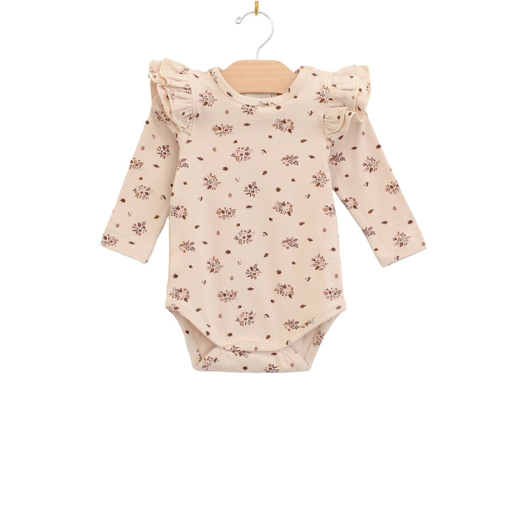 Flutter Sleeve Bodysuit- Fall Floral - is backordered and will ship as soon as it is back in stock.