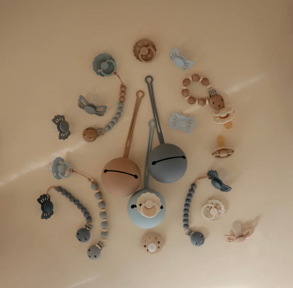 FRIGG Lucky is symmetrical with a slightly flattened teardrop-shaped nipple. The symmetrical design always fits correctly in baby’s mouth, regardless if it is facing up or down. FRIGG Lucky pacifiers have a flatter neck to minimize pressure on the palate and gums, which reduces the risk of crooked teeth and supports proper development of baby’s mouth and jaw.