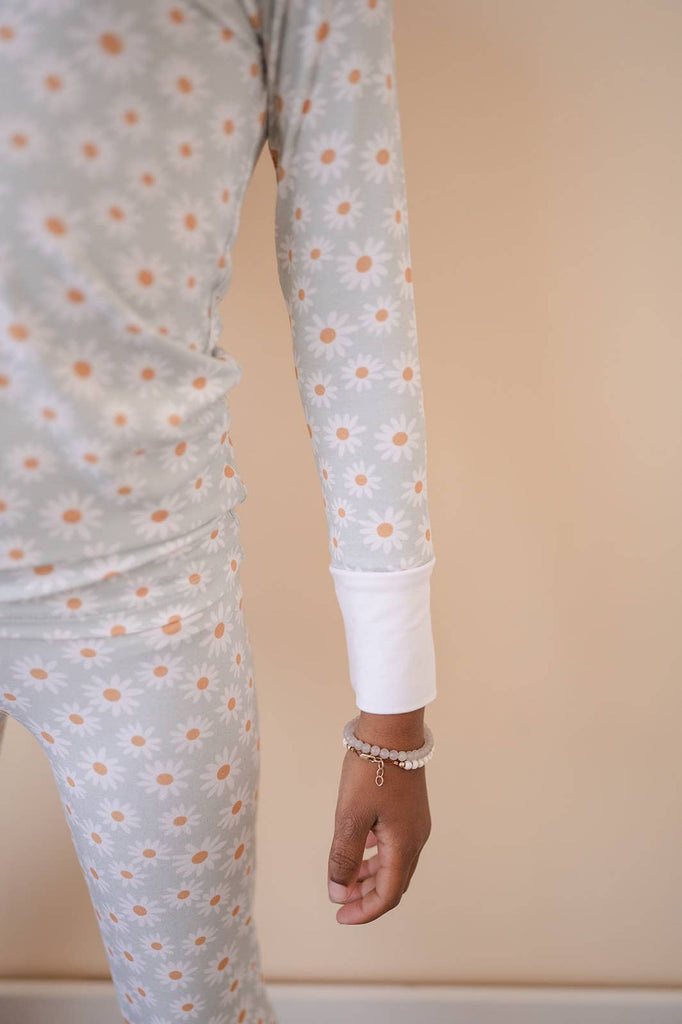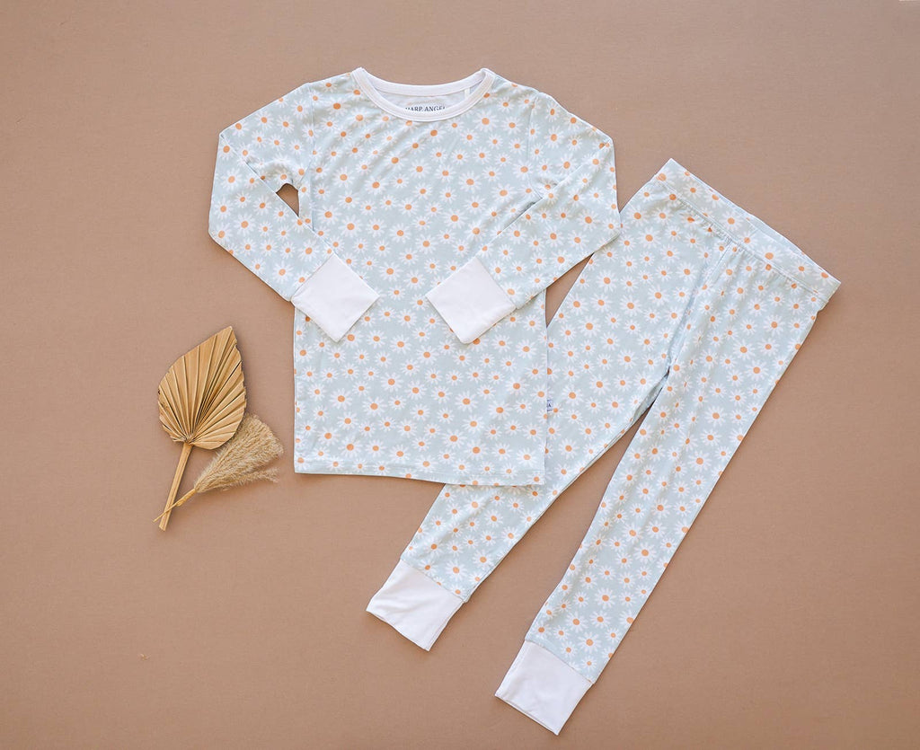 Elevate your child's bedtime experience with our kids' soft blue daisy floral bamboo 2-piece pajama set. Crafted for comfort and adorned with a delightful daisy floral pattern, these pajamas ensure peaceful nights and stylish slumbers for your little one.
